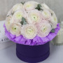 17 белых ранункулюсов в шляпной коробке в Кинешме