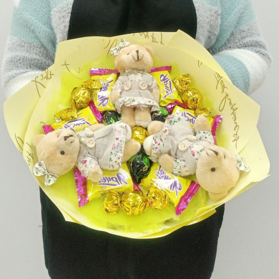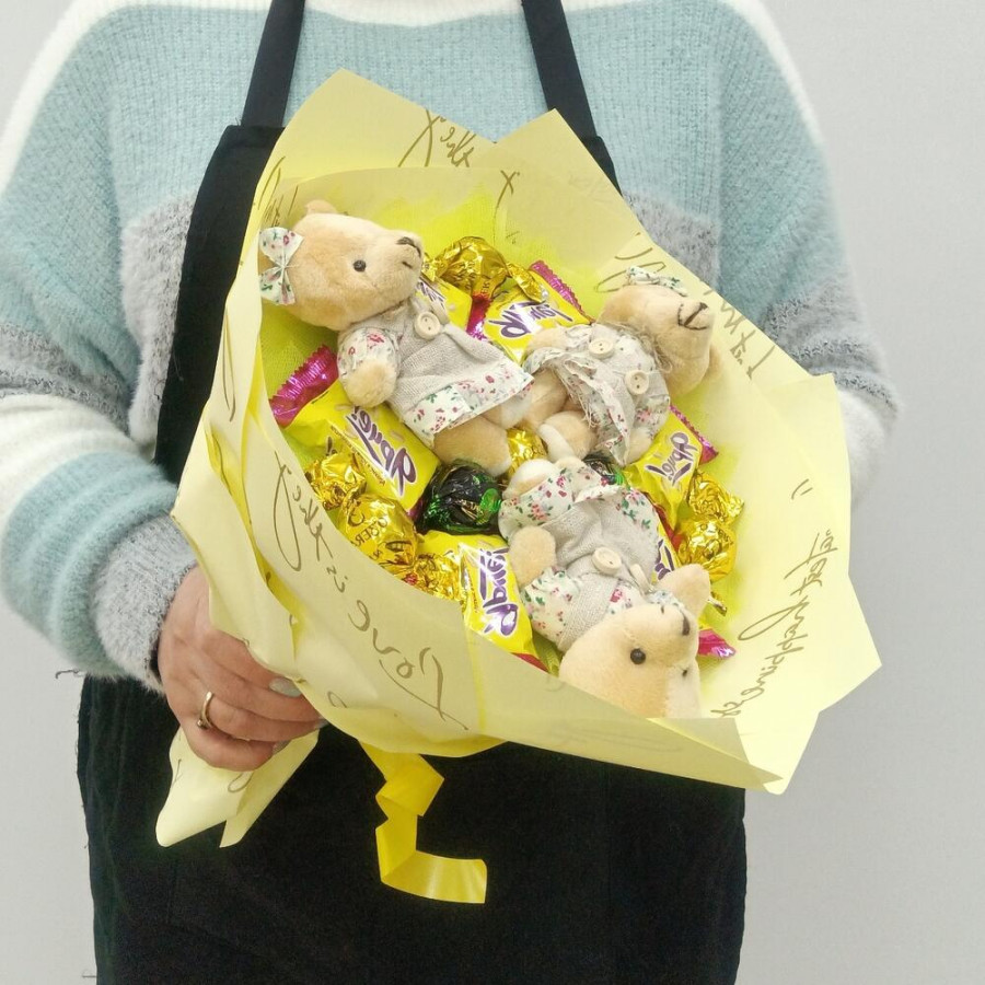Букет из игрушек медвежат и конфет в Кинешме