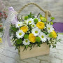 Композиция с белыми цветами в деревянном ящике